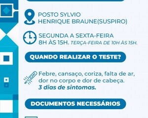 As segundas, quartas, quintas e sextas, os testes são realizados das 8 às 15 horas. Já as terças, das 10 às 15, devido a rotina laboratorial deste dia.