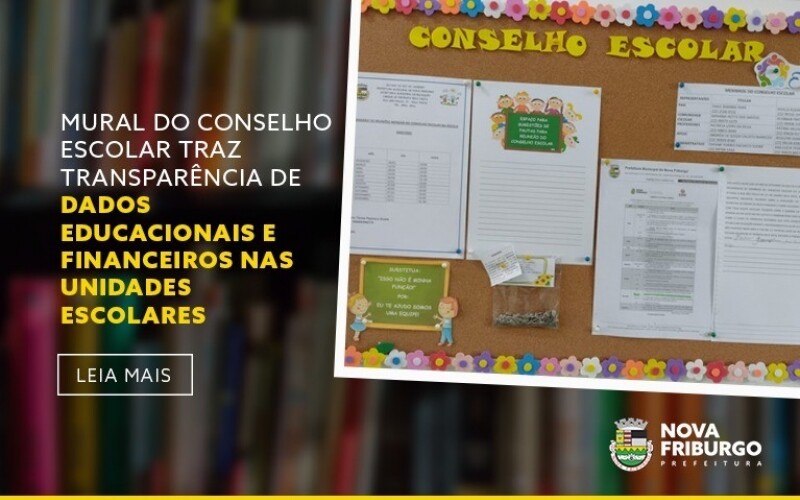 Os Conselhos Escolares das Unidades Municipais de Nova Friburgo estão disponibilizando, em local visível e acessível à comunidade escolar e local, o "Mural do Conselho Escolar", com a exposição das deliberações do Conselho Escolar, prestação de contas dos recursos financeiros provenientes de repasses federais e verbas próprias, cronograma de ações para o processo de escolha de diretores e dirigentes, entre outras informações que devem ser tornadas públicas, garantindo um fluxo de comunicação permanente.
