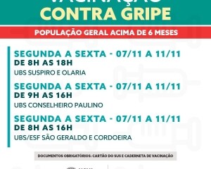 A Prefeitura, através da Secretaria Municipal, está há meses oferecendo o imunizante nos postos de Nova Friburgo e na próxima semana a campanha continua. De segunda a sexta-feira, nas Unidades Básicas de Saúde do Suspiro, Olaria, Conselheiro Paulino, São Geraldo e Cordoeira para todos acima de seis meses de vida.