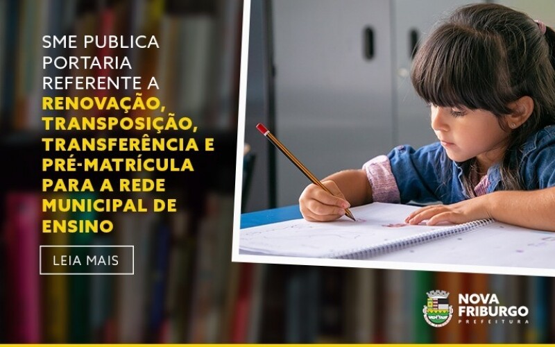 A Secretaria Municipal de Educação da Prefeitura de Nova Friburgo divulgou nessa quinta-feira, 20, duas portarias. Uma delas possui informações e instruções sobre a pré-matrícula de novos alunos para a rede municipal de ensino e, a outra, é sobre renovação, transposição e transferência interna de matrícula para o próximo ano de estudantes já matriculados no município. As novas normas valem para as etapas de Educação Infantil (Creche e Pré-escola) e Ensino Fundamental (Regular e Educação de Jovens e Adultos) para o ano letivo de 2023.
