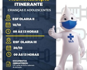 A multivacinação itinerante retorna nesta semana no bairro Olaria. A Secretaria Municipal de Saúde da Prefeitura de Nova Friburgo, através da Coordenação de Imunização, levará mais de 18 vacinas para todas as idades, especialmente às crianças, que são as protagonistas desta campanha. Dentre os imunizantes estão covid-19, influenza, contra a poliomielite, meningite, hepatite, febre amarela e outros.