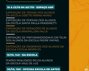 18 a 23/10, de 9h as 17h - Exposição de poesias dos alunos da escola Santa Paula Frassinetti - Local: Espaço Arp