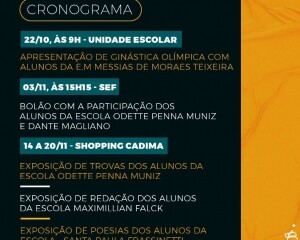 22/10, às 9h - Apresentação de ginástica olímpica com alunos da escola Messias de Moraes Teixeira - Local: Na própria Unidade Escolar