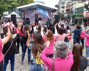 No último sábado, 01, foi realizada a abertura dos eventos do mês de conscientização e prevenção ao câncer de mama, Outubro Rosa, em frente à sede da Prefeitura de Nova Friburgo. Estiveram presentes a primeira-dama, Lorrayne Ribeiro, o prefeito Johnny Maycon, a jornalista e apresentadora, Tati Zavoli, o vereador Professor André, secretários municipais e dezenas de parceiros e colaboradores. O público participante teve acesso a diversos serviços, atividades e atrações gratuitas.