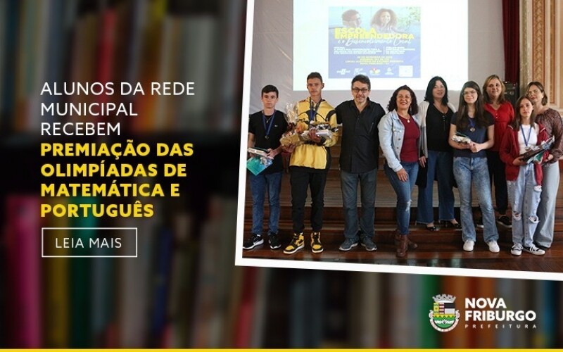 Em atendimento a lei municipal 4.013, na tarde da última quarta-feira, 28, foi realizada a cerimônia de premiação das Olimpíadas Municipais de Matemática e Português, no teatro do Colégio Anchieta. O encontro foi promovido pela Secretaria Municipal de Educação de Nova Friburgo e contou com a presença do prefeito Johnny Maycon, da secretária de Educação, Caroline Klein, e do secretário de Finanças, André Montechiari.