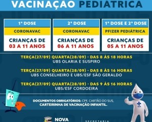 A segunda e primeira doses também estão sendo ofertadas para todas as idades. Quem tem mais de 3 anos pode e deve receber o imunizante contra o coronavírus.