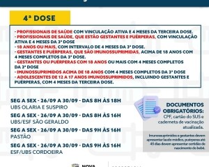 A quinta dose está disponível para os imunossuprimidos, gestantes e puérperas que são imunossuprimidas. A quarta dose pode ser aplicada em maiores de 18 anos, já a terceira aplicação pode ser feita na população acima de 12 anos.