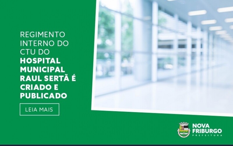 A Prefeitura de Nova Friburgo publicou na última quarta-feira, 21, o regimento interno do Centro de Tratamento de Urgência (CTU) do Hospital Municipal Raul Sertã, no Diário Oficial Eletrônico do município. A unidade não possuía esse regimento, que foi criado pela equipe da Secretaria Municipal de Saúde, através da Direção Técnica, Doutor Victorino Sepulcri, assinado pelo Prefeito Johnny Maycon.