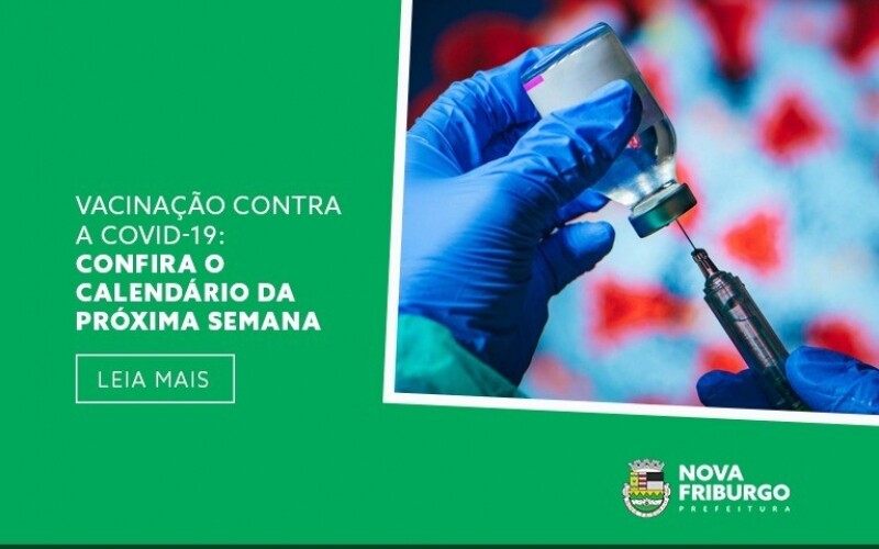A vacinação contra a covid-19 em Nova Friburgo segue acontecendo em Nova Friburgo pela Prefeitura na próxima semana. A quinta dose estará disponível para imunossuprimidos, gestantes e puérperas que são imunossuprimidas. Já a quarta dose está sendo ofertada para todos com mais de 18 anos.
