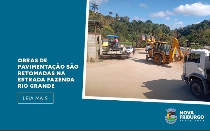 A Prefeitura de Nova Friburgo, por meio das secretarias de Agricultura e Desenvolvimento Rural, Infraestrutura e Obras, e da Secretaria Executiva de Desenvolvimento Regional, com o apoio das subprefeituras do 3º, 5º e 7º distritos, retomou as obras de pavimentação asfáltica na Estrada Fazenda Rio Grande. A intervenção tem como objetivo garantir mais segurança e mobilidade para moradores e produtores da região.