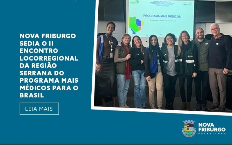 Nesta terça-feira (09), o município de Nova Friburgo sediou o II Encontro Locorregional da Região Serrana do Programa Mais Médicos para o Brasil. O evento contou com a presença de representantes do Ministério da Saúde, da Secretaria de Estado de Saúde do Rio de Janeiro (SES/RJ) e de municípios da região, reunindo médicos do programa e gestores da Atenção Primária.