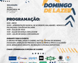 MAIS UMA EDIÇÃO DO DOMINGO DE LAZER ACONTECERÁ NO PRÓXIMO DIA 28