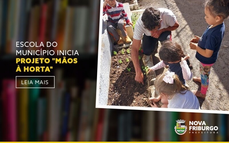 Na última semana começou o projeto "Mãos à Horta", no Centro Municipal de Educação Infantil Cantinho Feliz, em Mury. Além dos pequenos alunos colocarem a "mão na massa" e plantarem mudinhas, foi trabalhada a questão da importância de uma alimentação saudável. Todas as turmas da unidade, desde o maternal II até o pré-escolar II, participaram das atividades.