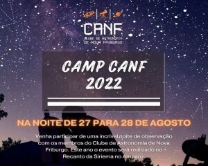 No final deste mês de agosto, com início no entardecer do dia 27 se estendendo até o dia 28, o Planetário de Nova Friburgo, em parceria com o Clube de Astronomia de Nova Friburgo, realizará o 3º Camp Canf. O evento reunirá diversos astrônomos amadores em um refúgio no distrito de Amparo, no Recanto da Siriema, para observação do céu noturno com telescópios.