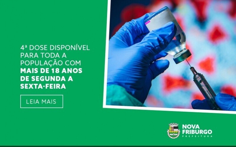 QUARTA DOSE CONTINUA DISPONÍVEL PARA TODA A POPULAÇÃO FRIBURGUENSE COM MAIS DE 18 ANOS