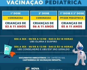 A campanha pediátrica começa com a primeira aplicação para as crianças com três anos nas salas de vacina. Ainda sobre a primeira dose, o primeiro contato com o imunizante está disponível em todos os postos, assim como a repescagem da segunda aplicação.