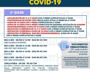 O primeiro reforço, a terceira dose, está disponível para todos com mais de 12 anos. Já a quarta dose segue sendo oferecida para toda a população acima de 18 anos.