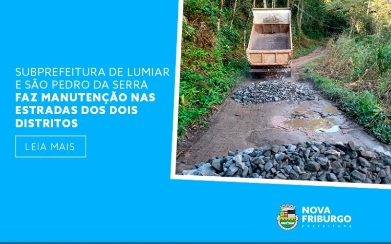 Durante o mês de julho a Prefeitura de Nova Friburgo, por meio da Subprefeitura de Lumiar e São Pedro da Serra, providenciou reparos em várias localidades da grande área que envolve os dois distritos. O cronograma de trabalho é sempre definido pelo prefeito Johnny Maycon com o subprefeito Jorge Freimann.