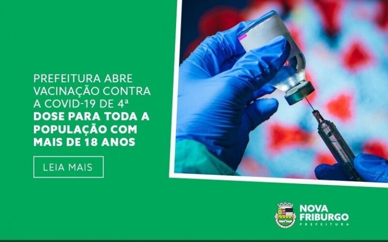 PREFEITURA ABRE VACINAÇÃO CONTRA A COVID-19 DE 4ª DOSE PARA TODA A POPULAÇÃO COM MAIS DE 18 ANOS