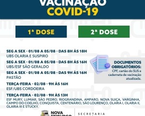O início de agosto também será marcado pela aplicação da primeira dose para as crianças com mais de três anos. A vacinação pediátrica acontecerá todos os dias, nas salas de vacina das unidades de saúde.