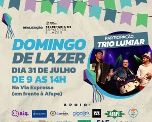 O ‘Domingo de Lazer’ está chegando novamente. A edição de julho será neste domingo, 31, das 9h às 14h, na Via Expressa, em Olaria, com temática julina. Além das tradicionais atividades gratuitas, o evento também contará com a participação do Trio Lumiar e do mágico Gabriel Mattos, levando muita música e diversão.