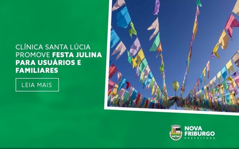 No próximo domingo, 31, acontecerá a Festa Julina da Clínica Santa Lúcia com os usuários e familiares da unidade. Das 14h às 16h, a diversão estará garantida com comidas típicas, tais como salsichão, doces tradicionais, refrigerante e caldo, e muita música. Cabe reforçar que o evento será fechado para os pacientes e seus parentes, não sendo aberto ao público.