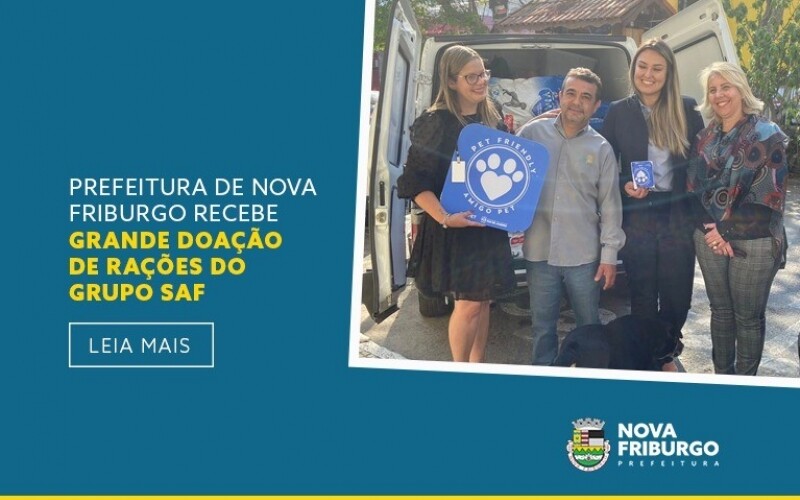 O carinho aos animais de rua ganhou mais um aliado. A Prefeitura de Nova Friburgo, por meio da Subprefeitura do Bem-Estar Animal (Ssubea), setor ligado à Secretaria de Meio Ambiente, recebeu mais uma grande quantidade de rações. Depois da Stam Metalúrgica, desta vez as rações foram doadas pelo grupo SAF PET. O material foi entregue na última segunda-feira, dia 18, na sede da Ssubea, que fica na antiga Rodoviária Leopoldina, ao lado da prefeitura.
