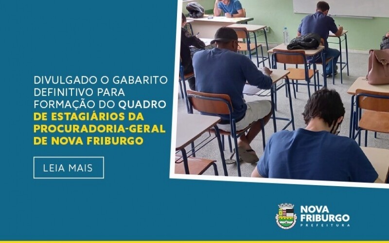 A Prefeitura de Nova Friburgo, por meio da Procuradoria-Geral do Município, publicou na edição desta quarta-feira, 20 de julho, do Diário Oficial Eletrônico, o gabarito definitivo da prova objetiva do edital Nº 01/2022, cujo objetivo era a formação do quadro de estagiários da pasta. Os candidatos podem acessar o documento através do site oficial da Prefeitura de Nova Friburgo (www.pmnf.rj.gov.br).