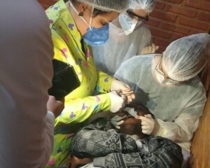 A limpeza bucal foi realizada por uma odontóloga e alguns estagiários de odontologia da UFF de Nova Friburgo. Um cronograma periódico para a assistência desses profissionais está sendo montado para que também sejam realizados outros procedimentos, de acordo com as necessidades, como, por exemplo, extração.