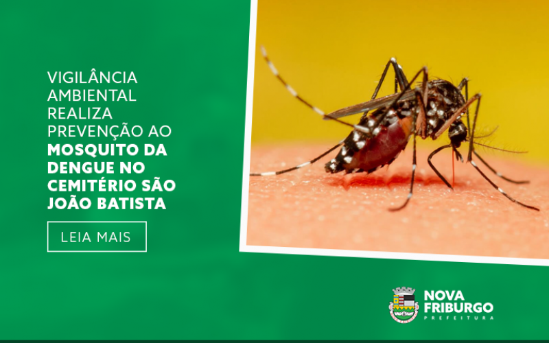 A equipe da Vigilância Ambiental da Subsecretaria de Vigilância em Saúde realizará no próximo sábado, 16, um trabalho de prevenção ao aedes aegypti, mosquito transmissor de várias doenças, no Cemitério São João Batista, no Centro de Nova Friburgo.