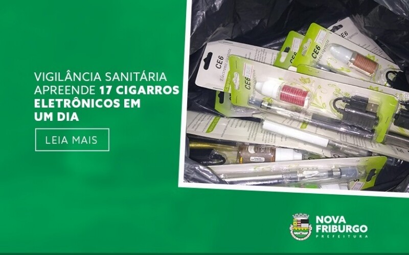 A Vigilância Sanitária de Nova Friburgo, setor da Subsecretaria de Vigilância em Saúde da Secretaria Municipal de Saúde, apreendeu 17 cigarros eletrônicos na sexta-feira, 08, pelas ruas da cidade. No último mês, outras 20 unidades foram apreendidas em eventos.