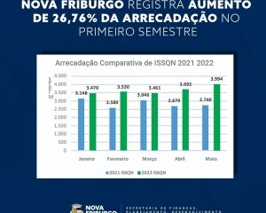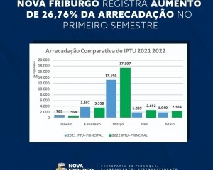 NOVA FRIBURGO REGISTRA AUMENTO DE 26,76% DA ARRECADAÇÃO NO PRIMEIRO SEMESTRE