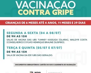 PREFEITURA CONTINUA VACINAÇÃO CONTRA A GRIPE PARA TODA A POPULAÇÃO ACIMA DE SEIS MESES