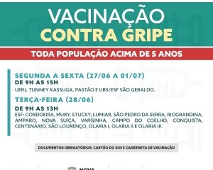 A partir desta segunda-feira, 27, a vacinação contra a influenza está disponível para toda a população acima de 6 meses de idade, em Nova Friburgo.