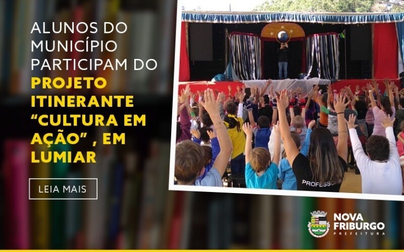 No último dia 23 de junho, quinta-feira, foi realizado o evento “Cultura em Ação”, em Lumiar, 5° distrito de Nova Friburgo. Alunos do primeiro e segundo turnos da Escola Municipal Acyr Spitz, localizada no distrito, participaram desse projeto itinerante que atua no cenário circense e teatral democratizando a Cultura.