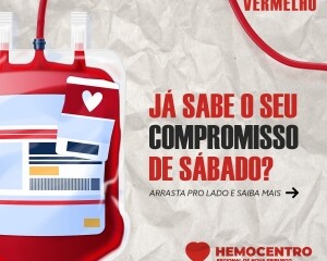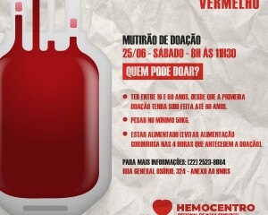 A partir das 8h até às 11h30, o Hemocentro estará de portas abertas para todos que queiram participar dessa boa ação. Lembrando que é necessário ter entre 18 a 69 anos (menor de idade deve estar acompanhado do responsável), pesar mais de 50 quilos e não ter ingerido alimentos gordurosos ou derivados de leite antes da doação.