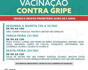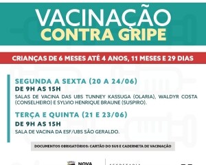 A aplicação da influenza será feita mediante documentação comprobatória. Além do RG, CPF, cartão do SUS e a caderneta de vacinação.