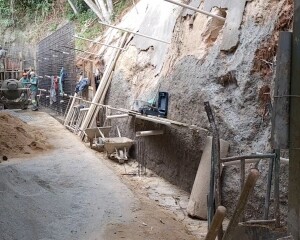 A obra do muro de contenção na Escola Municipal Maximilian Falck, localizada no distrito de Mury, está a todo vapor. O muro, que medirá 58 metros de comprimento e 3,50 de altura, permitirá a reabertura da unidade que, inclusive, também está passando por reformas internas no prédio. A construção do muro foi licitada pela Prefeitura de Nova Friburgo e o menor preço ofertado foi de R$ 1,4 milhão, pela empresa Itauba Construtora Ltda. Já as reformas no interior do imóvel, a verba para tal advém da própria escola, de recursos federais.