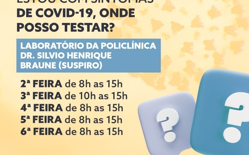 A testagem de identificação da Covid-19 que ocorre no Laboratório da Policlínica Dr. Sylvio Henrique Braune, no Suspiro, mudou de horário.