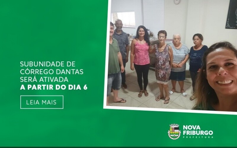 SUBUNIDADE DE CÓRREGO DANTAS SERÁ ATIVADA A PARTIR DO DIA 6