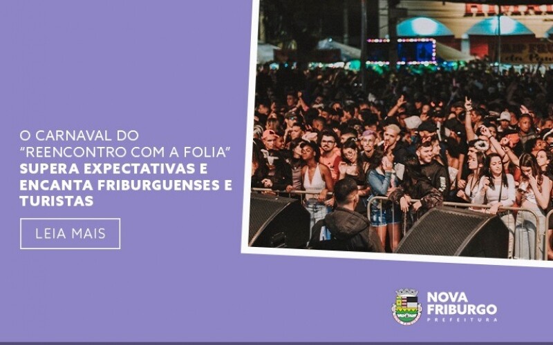 O Carnaval 2022 entrou para a história de Nova Friburgo, tanto por acontecer no mês de maio – data atípica para a folia, junto com o aniversário da cidade -, quanto pela qualidade da programação, estrutura e segurança oferecidas pela prefeitura para cidadãos e visitantes. Ao longo dos quatro dias do “Reencontro com a Folia”, cerca de 60 mil pessoas acompanharam os eventos na Avenida Alberto Braune, Praça Dermeval Barbosa Moreira e Momo Bier Fest, a Rua da Cerveja Artesanal, na Rua Oliveira Botelho.