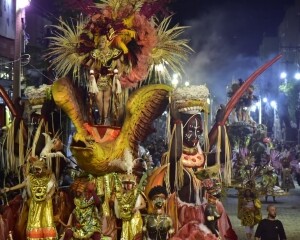 BOLA BRANCA – “Acende a vela, defuma o altar / Com fé e terço na mão nenhum mal irá te alcançar / Em nome do Pai, do Filho e do Espírito Santo / Meu samba vai te abençoar” – A escola de samba presidida por Odete Silveira e que tem os carnavalescos Marcelo e Márcio Venâncio foi a segunda a desfilar, com o enredo “Ibukun – Em nome de Deus o dom de curar”. Com as cores preto, branco, azul e rosa a escola do Catarcione também levou à avenida 400 figurantes na noite de sexta-feira, esquentando o friozinho característico de Nova Friburgo nesta época.