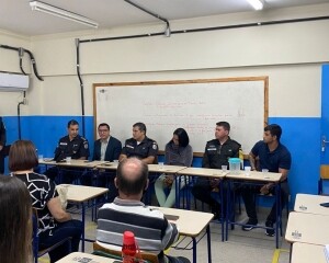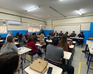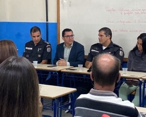 O prefeito Johnny Maycon esteve, junto à secretária de Educação, Caroline Klein, na reunião sobre o Programa Patrulha Escolar e Proteção à Criança e ao Adolescente, nesta segunda-feira, 09, no Colégio Estadual Dr. Galdino do Valle Filho, no Centro. O programa Patrulha Escolar, implementado pelo Governo do Estado, é composto por equipes da Polícia Militar capacitadas para atuarem de forma participativa com a comunidade escolar. Na ocasião, foram convidados para participarem gestores de escolas municipais e estaduais.