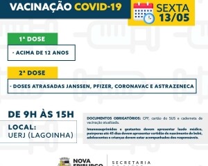Já na sexta-feira, 13, será um dia destinado à repescagem de primeira dose para quem tem mais de 12 anos e não conseguiu se vacinar e a segunda dose para quem não conseguiu completar o esquema vacinal inicial.