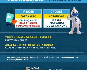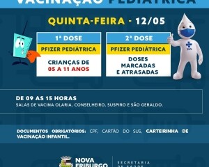 Na quarta e quinta-feira, 11 e 12, acontecerá em Nova Friburgo a campanha de imunização para as crianças, tanto primeira quanto segunda dose, nas salas de vacina das Unidades Básicas de Saúde.