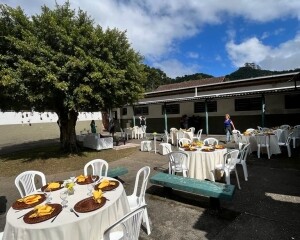 Uma deliciosa refeição foi servida a todas, independentemente se são mães ou não, com entrada, almoço, sobremesa e refrigerante, ao som de música ao vivo.