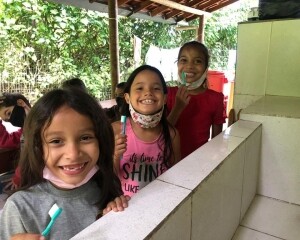 A atividade com as crianças de Riograndina também contou com a presença de duas odontólogas, que são professoras da extinta Faculdade de Odontologia de Nova Friburgo (FONF), acompanhadas de cinco estagiários de odontologia da Universidade Federal Fluminense (UFF).