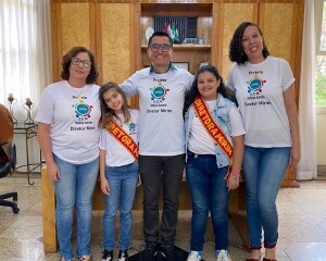 O prefeito Johnny Maycon recebeu no gabinete na última sexta-feira, 8, as alunas participantes do projeto Diretor Mirim, realizado pela Escola Estadual Municipalizada Amâncio Azevedo, no bairro Cascatinha. Foi realizada uma votação na escola, com três chapas concorrendo, e com um total de 120 votantes, a chapa vencedora foi a composta pela nova diretora mirim Emanuelly de Oliveira Gomes e a nova vice-diretora Ana Lívia Galhardo Gonçalves. Além das presenças do prefeito, da primeira dama Lorrayne Ribeiro, da Emanuelly e da Ana Lívia, a secretária de Educação Caroline Klein, a diretora da escola Cláudia de Lima Andrade e professores da unidade também estiveram presentes na ocasião.