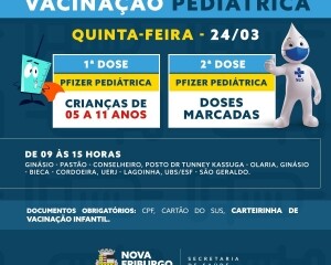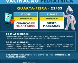 Já sobre a campanha pediátrica, na quarta-feira, 23, haverá a vacinação infantil com a Coronavac para as crianças com 6 a 11 anos sem comorbidade, enquanto, na quinta-feira, 24, será feita a aplicação da Pfizer pediátrica para todos os menores (com ou sem comorbidade) que estão na faixa etária de 5 a 11.