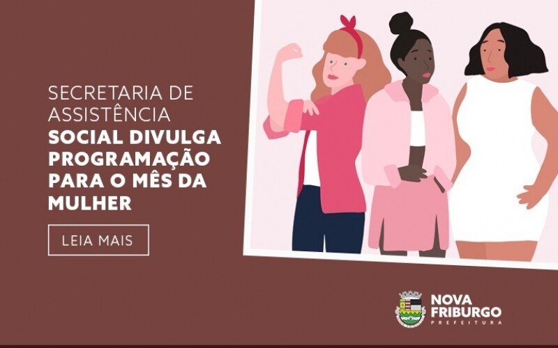 Durante todo mês de março a Secretaria de Assistência Social, Direitos Humanos, Trabalho e Políticas Públicas para Juventude vai promover uma extensa programação voltada para as mulheres, em razão do Dia Internacional da Mulher, a ser comemorado no próximo dia 8. O tema das ações planejadas pela pasta é "Violência Contra a Mulher Nova Friburgo Mete a Colher - Mulheres Friburguenses em ação: Não se cale".